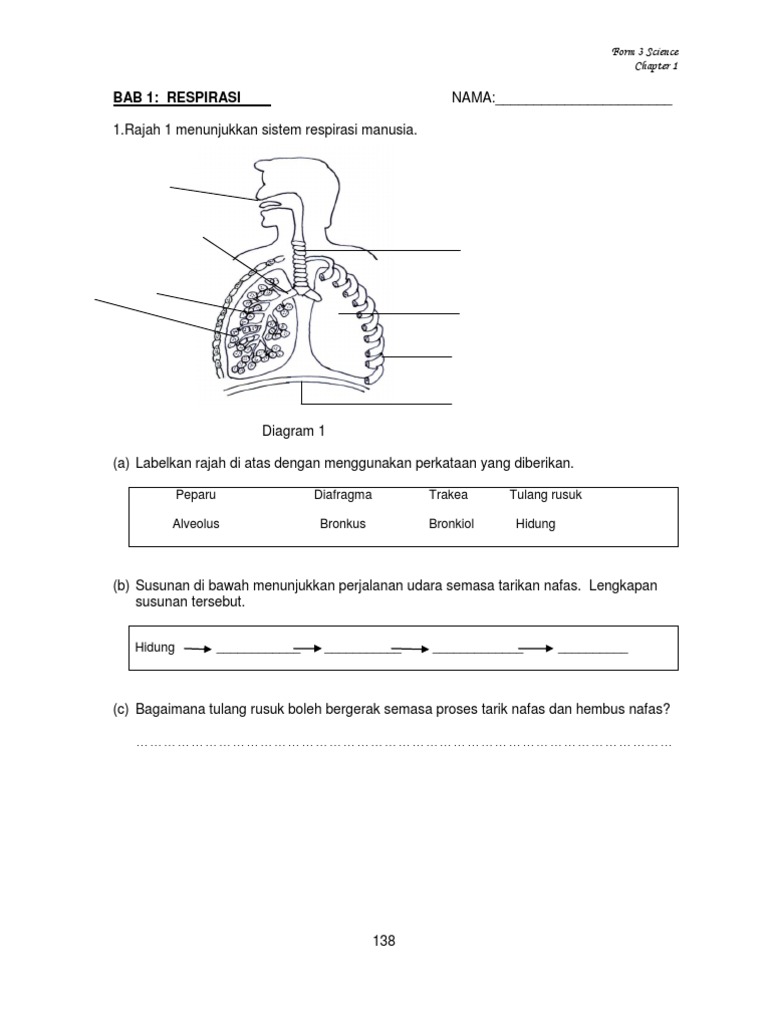 O Respirasi O Pembahagian O Perkumuhan O Pencernaan O Pembiakan O Pertumbuhan. Saraf kranium dan saraf spina. Adakah anda suka Latihan Sains Tingkatan 2 Bab 1.